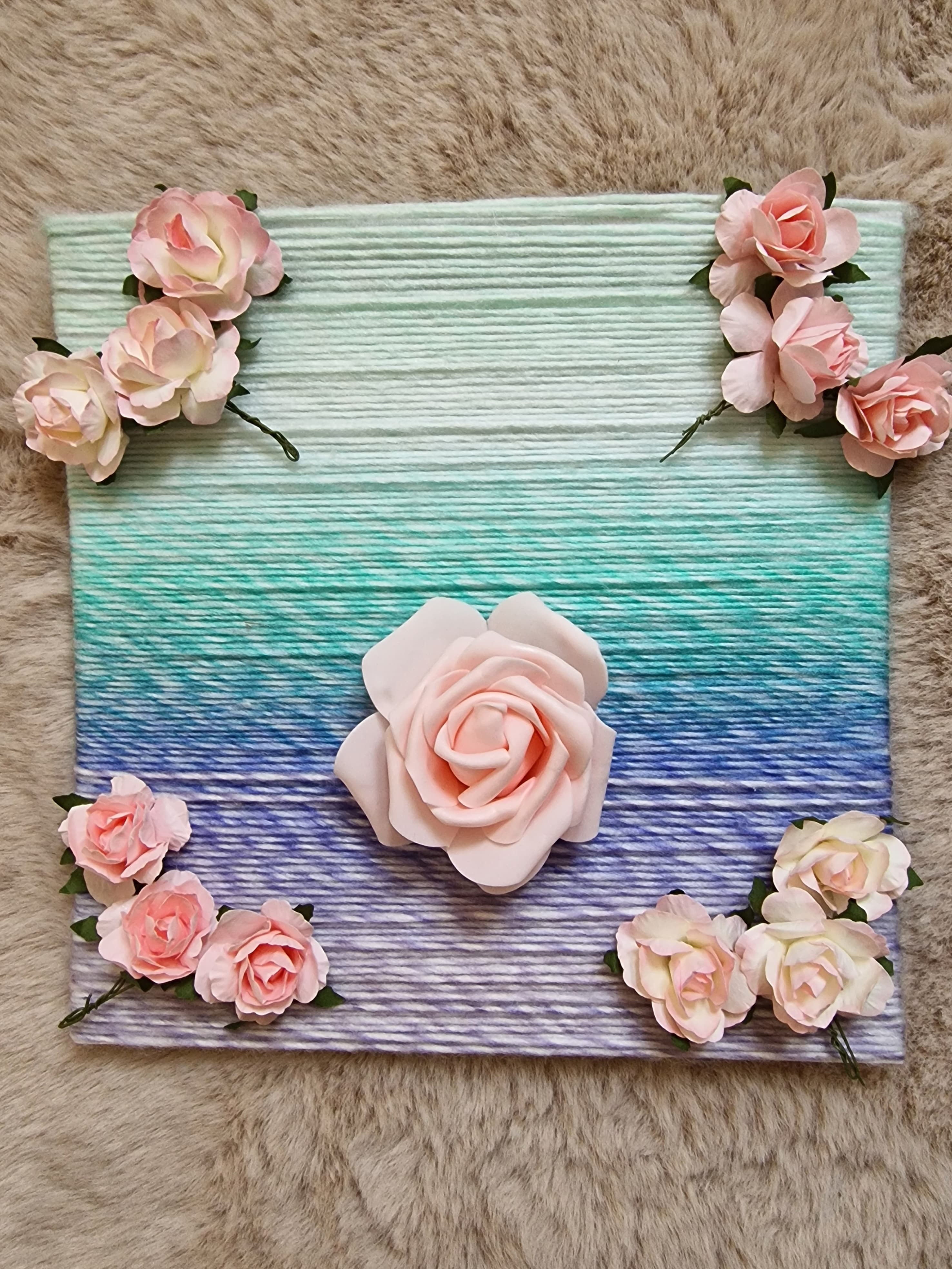 Całość wykonana z delikatnej wysokiej jakości wełny na płótnie z dodatkiem przepięknych róż - a to wszystko stworzone z miłością.