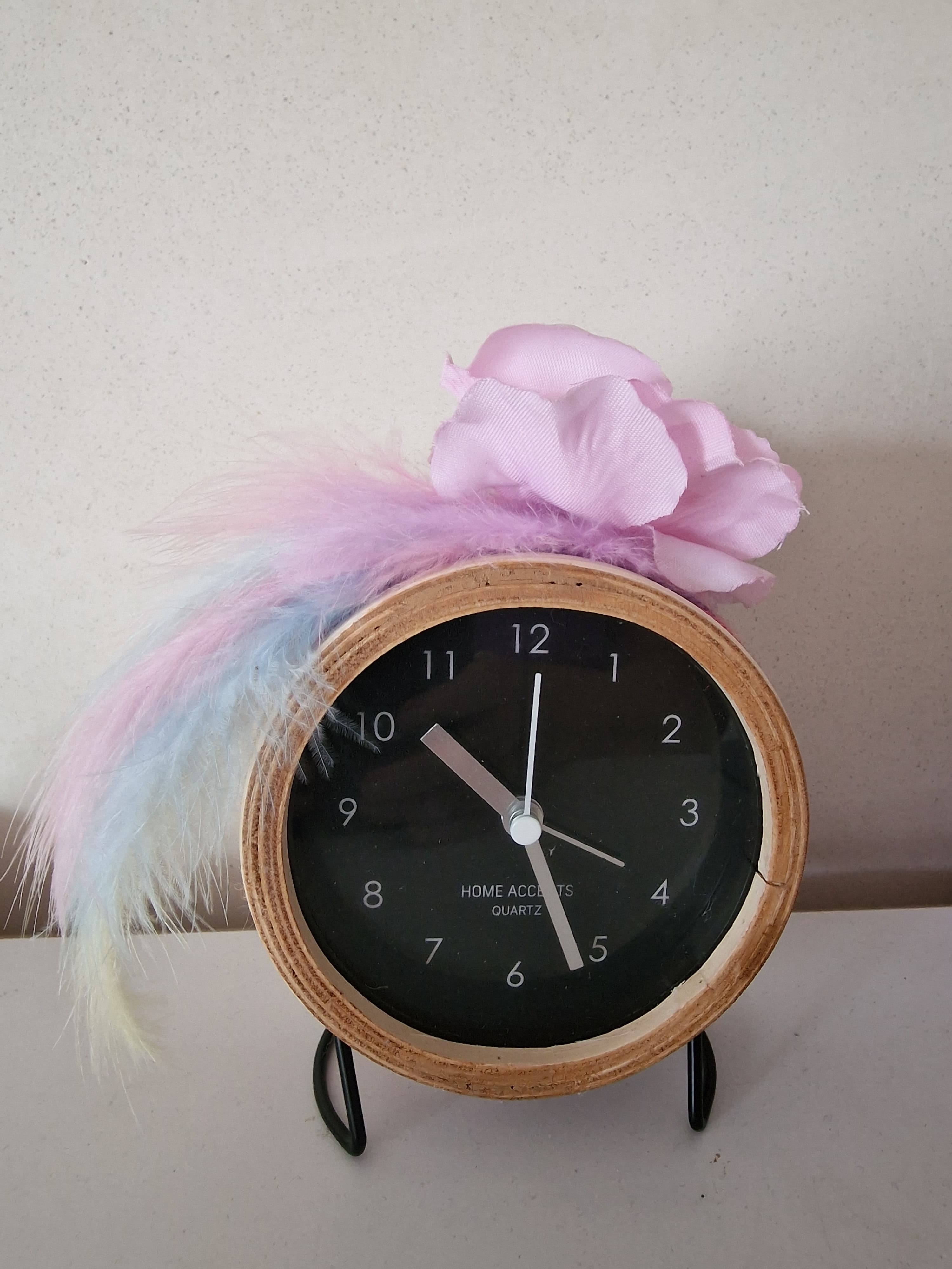 Szczęsliwi czasu nie liczą. :) - drewniany zegar z anielskimi piórkami i przepiękną różową różą ucieszy niejedne oczy. Zegar został zaimpregnowany by wydłużyć jego idealny wygląd na długie lata.